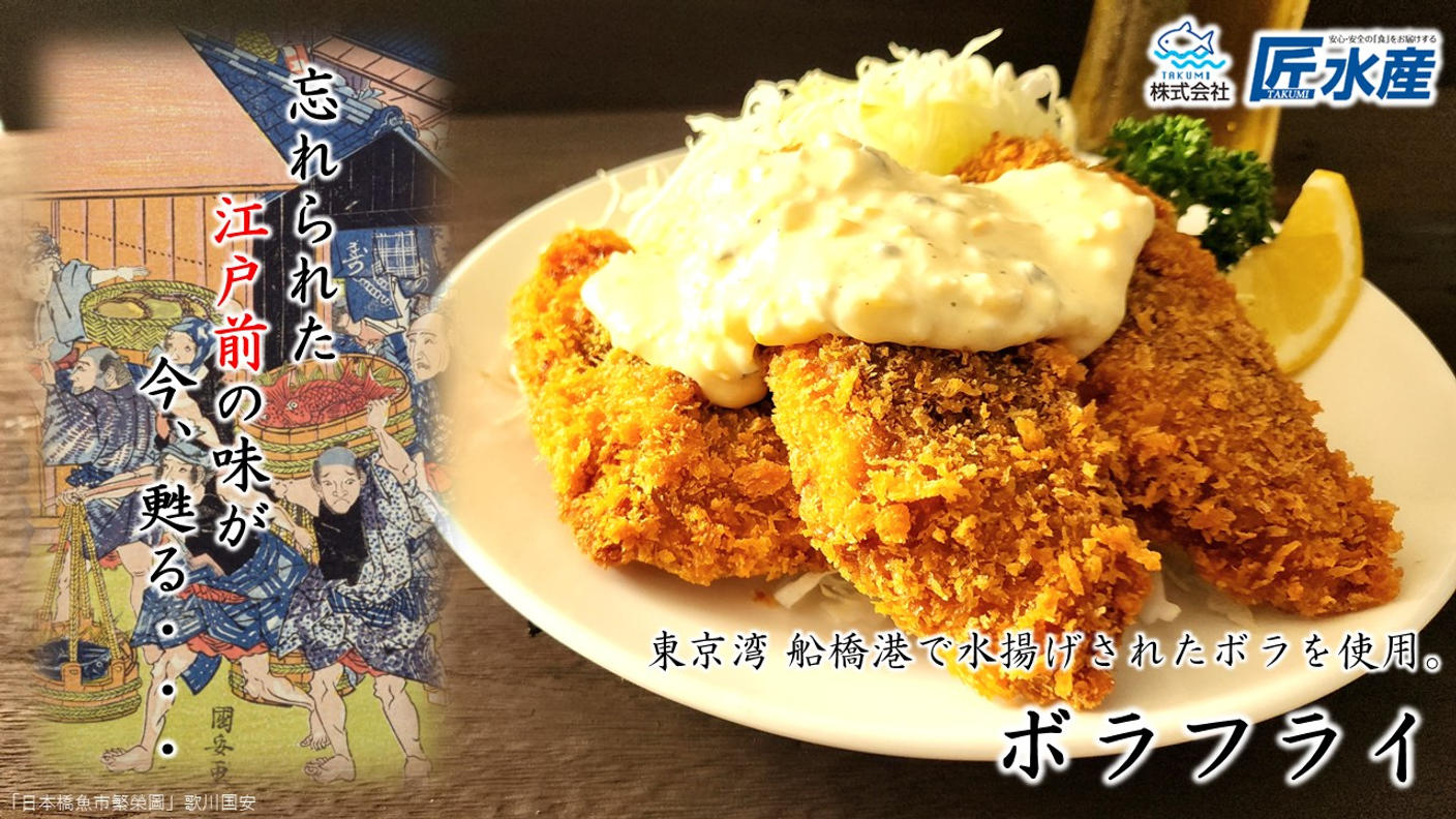 忘れ去られた江戸前の味が今甦る。 船橋港で水揚げされた未利用魚「ボラ」でつくったボラフライ!