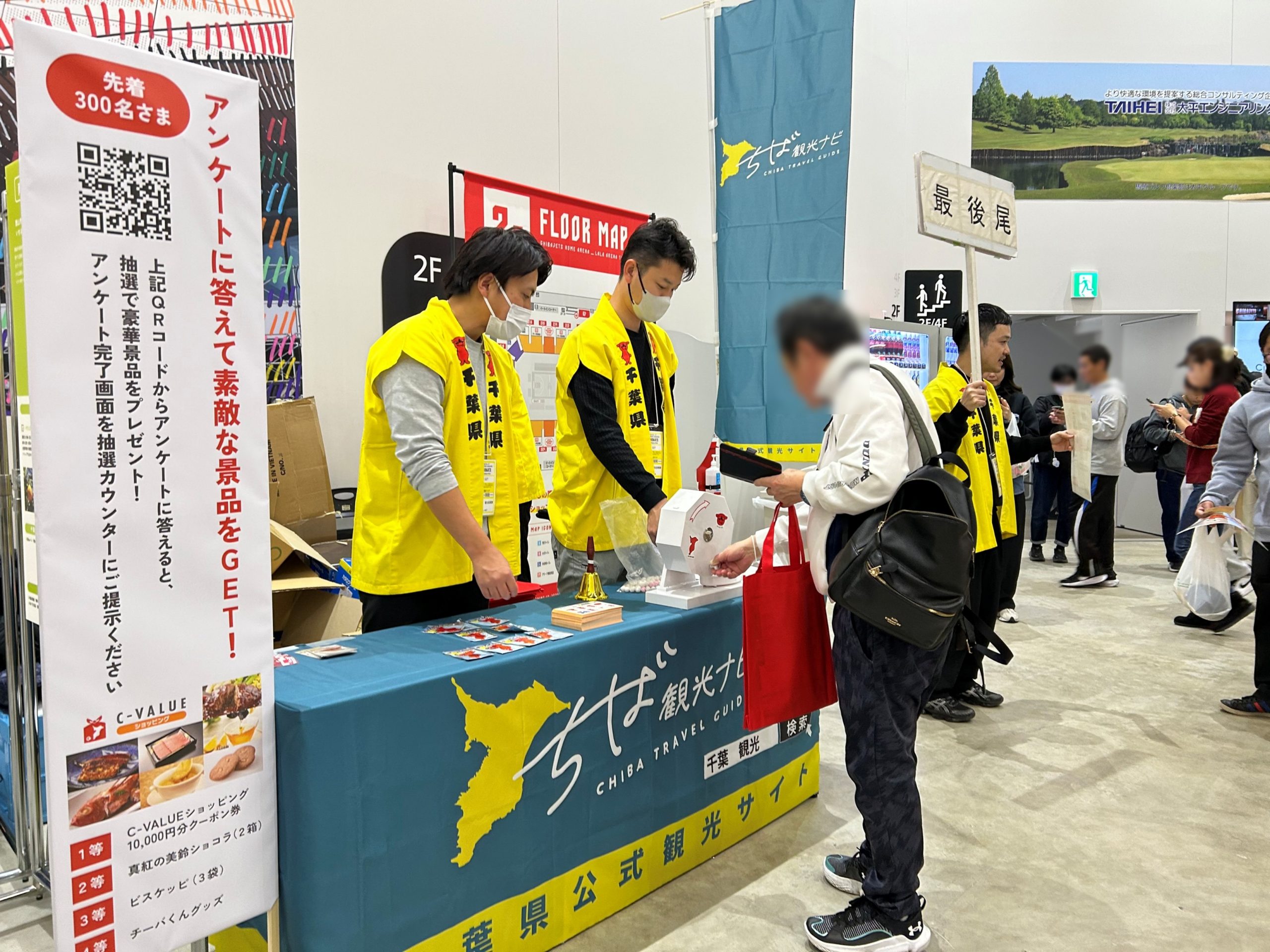 ブース訪問者の方々には、千葉県の観光に関するアンケートにご協力いただきました。アンケート回答を条件にガラポン抽選会に参加いただくことで、多くの方々から貴重なご意見を伺うことができました。