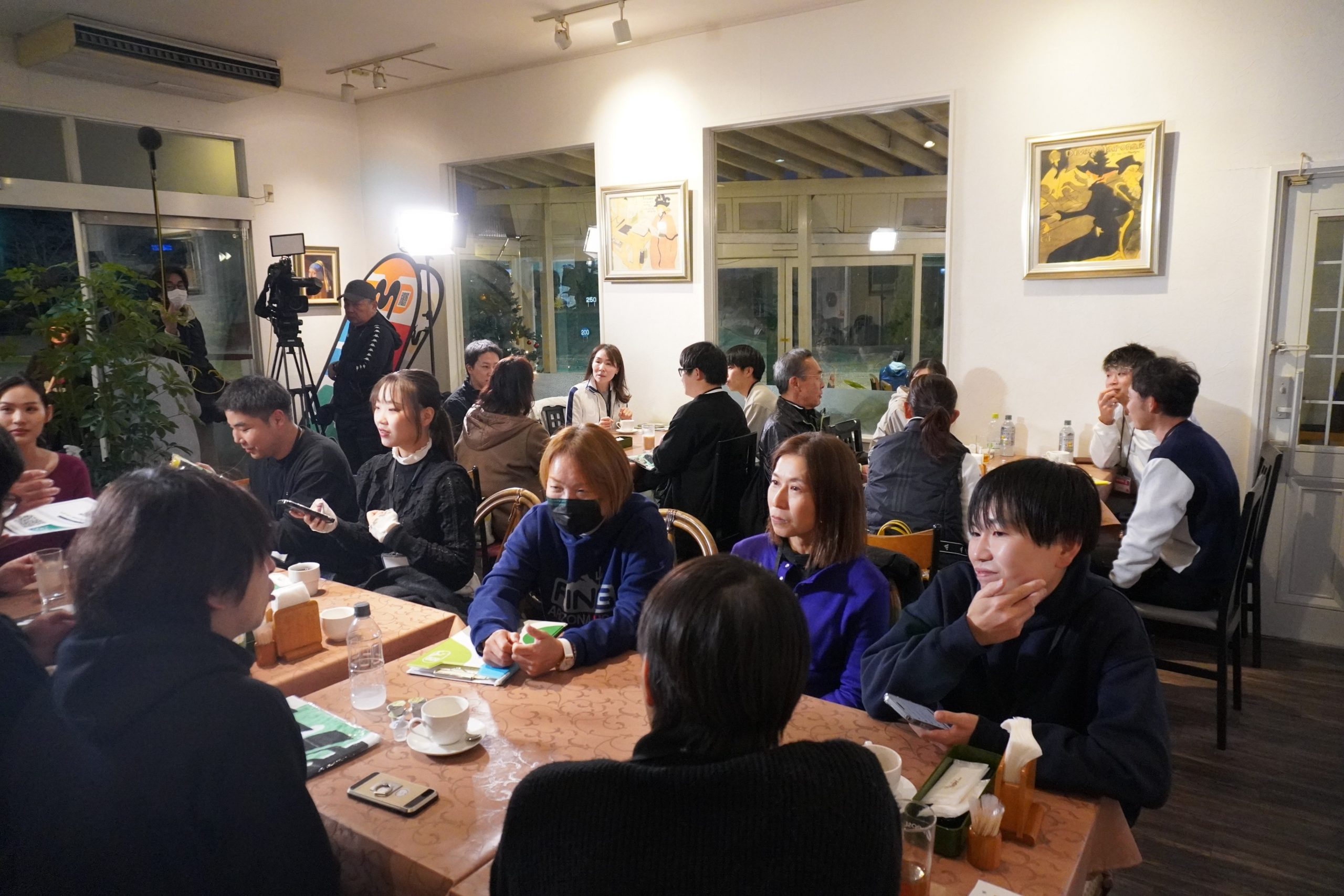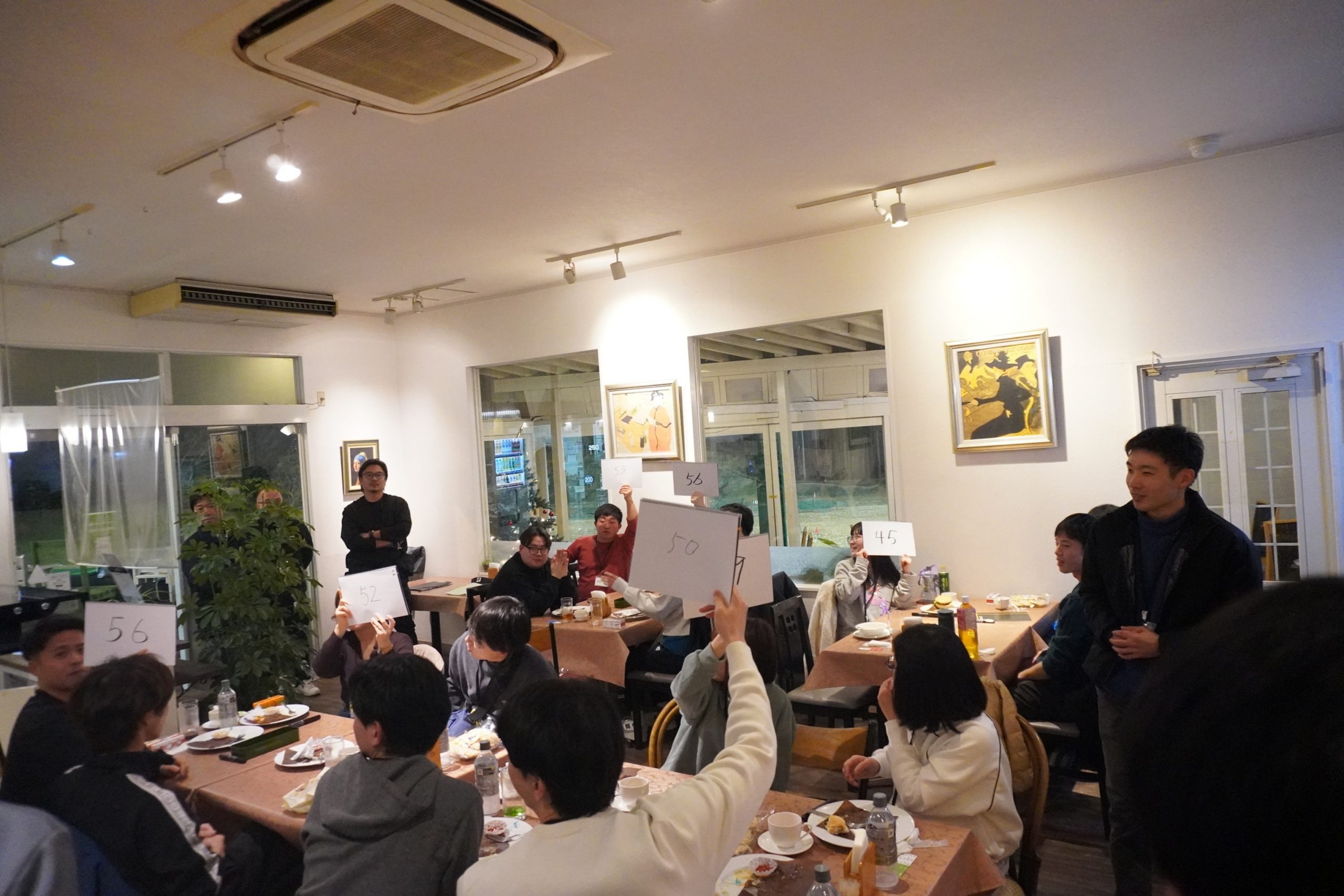 レッスンの後には、練習場併設のレストランにて懇親会が開催され、ペア対抗のクイズ大会も通じて参加者間の交流が行われました。