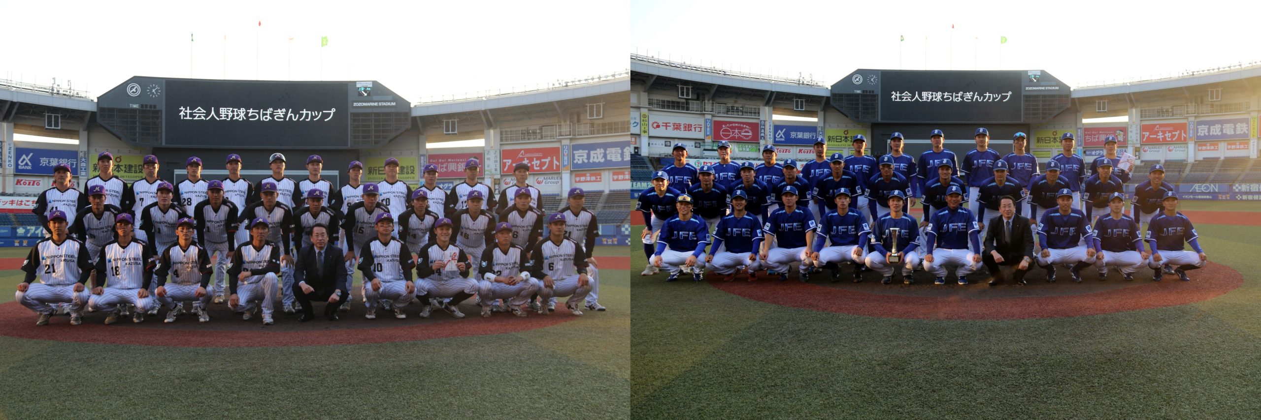 都市対抗野球千葉県代表の常連としてしのぎを削る「日本製鉄かずさマジック」と「JFE東日本」が1DAYマッチで対戦。スタジアムには多くの来場者が集まり、迫力あるプレーと熱気あふれる声援が会場全体を包み込みました。